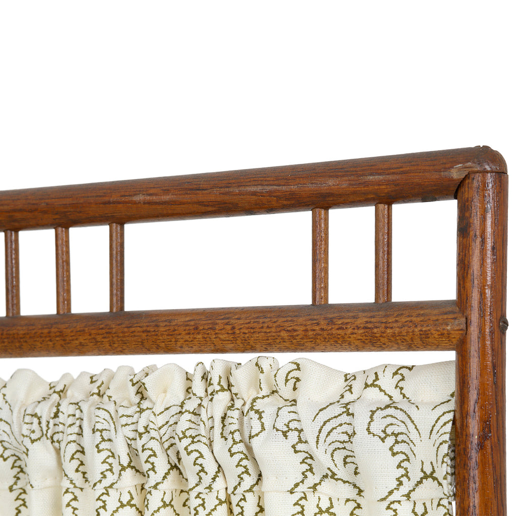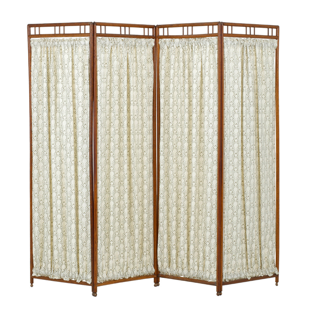 An Arts and Crafts fourfold screen. An elegant ash wood frame, recently reupholstered in Soane's Pineapple Silhouette - Moss.