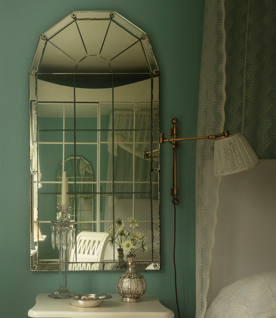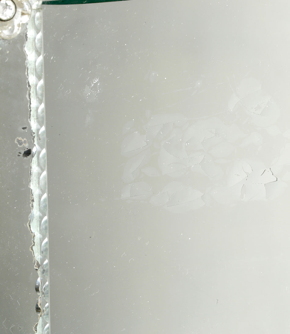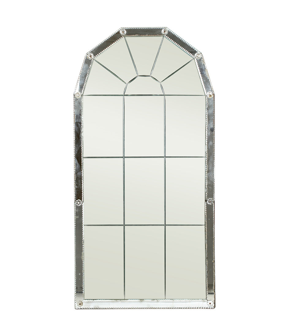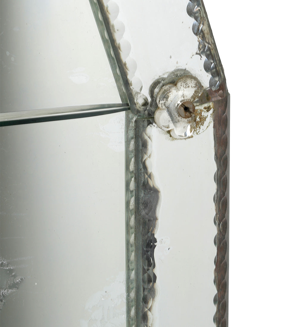 An unusual English Art Deco segmented mirror with a dome top. The architecturally shaped bevelled plates with a decorative outer rim with faceted floral jewel screws.