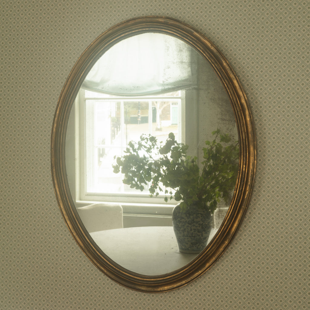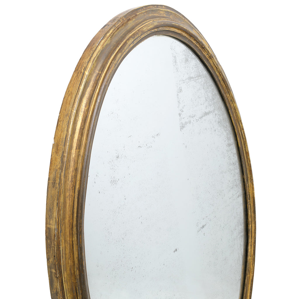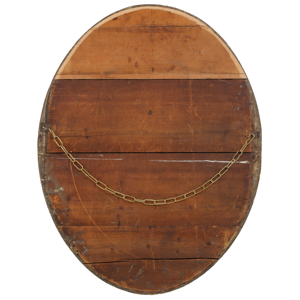 A decorative English large scale antique oval wall mirror with original mirror plate and giltwood frame.
