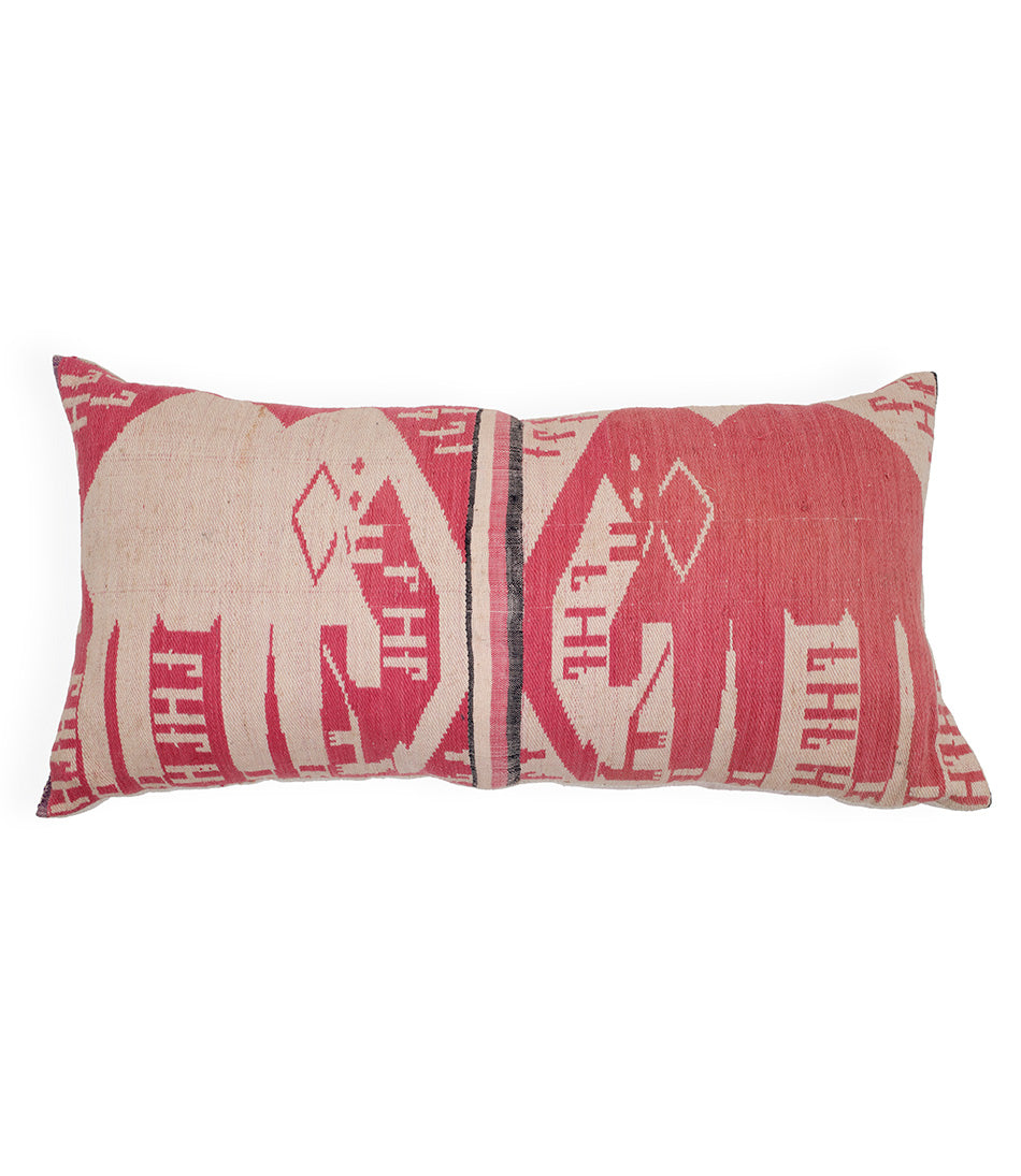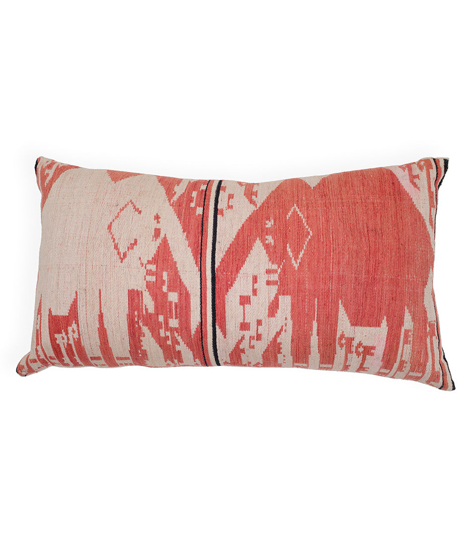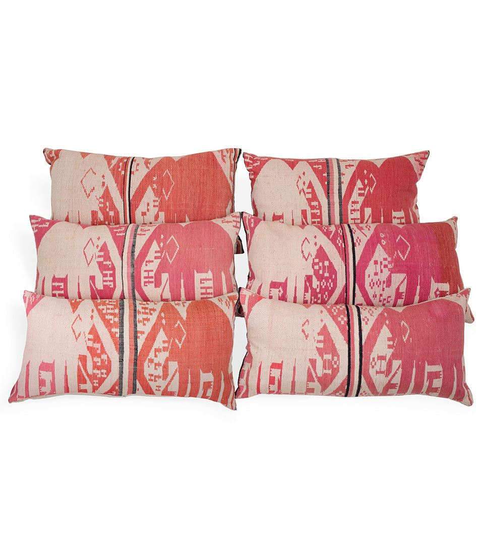 Six down filled cushions created from an early 20th Century ceremonial blanket, Southeast Asia.