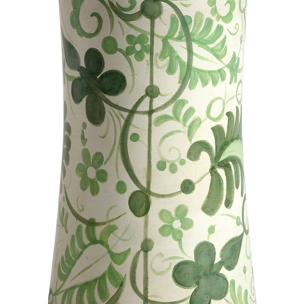 Dynamic leaves and flowers in two shades of green plunge over the surface of this lamp, named for the medicinal plant Verbascum thapsus or mullein. Verbascum was described by the Roman scholar Pliny the Elder in his Natural History, and its healing powers have been tried on everything from colds to sunburn. Spirited and fresh, this is the most energetic of the Albarello patterns.