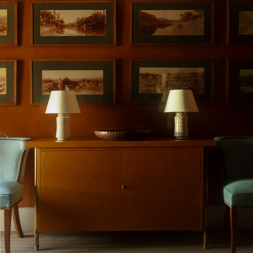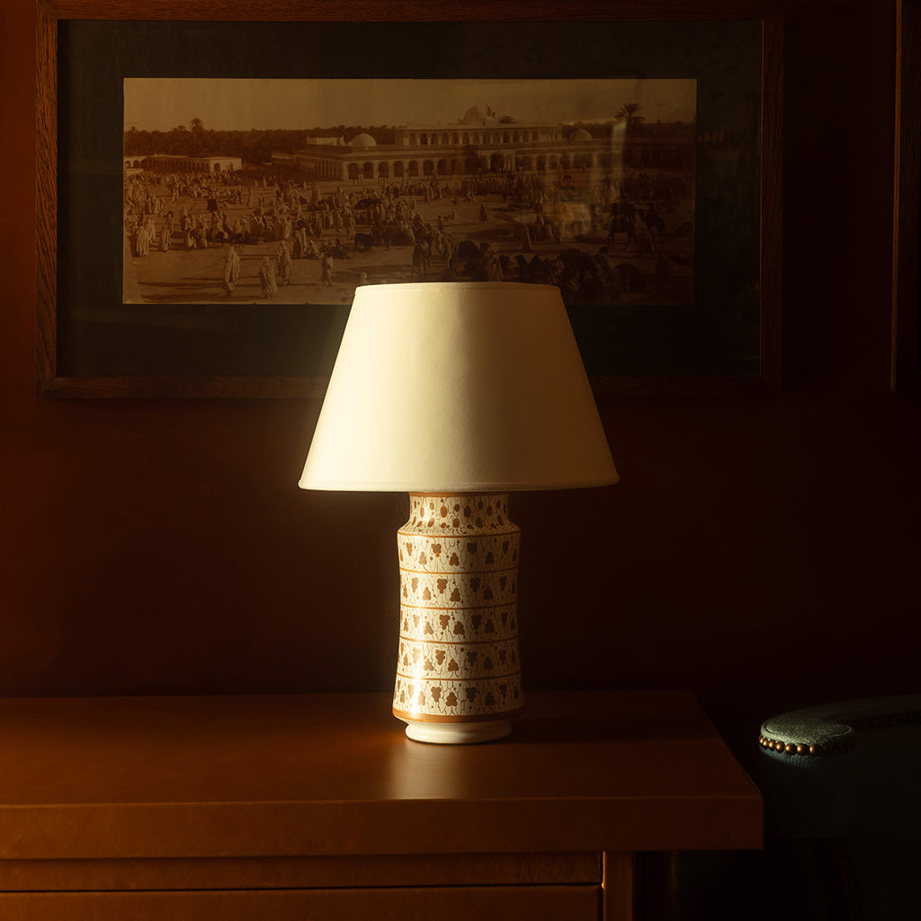 The Apothecary Table Lamp is hand painted by artist Sophie Coryndon in her Sussex studio. The design is inspired by Moorish earthenware jars known as Albarelli. These jars were used to hold ointments, medicines and even gunpowder and became popular in Italian apothecaries in the 15th century. To differentiate their contents the jars were painted with individual designs which Sophie references in the artwork of each lamp.